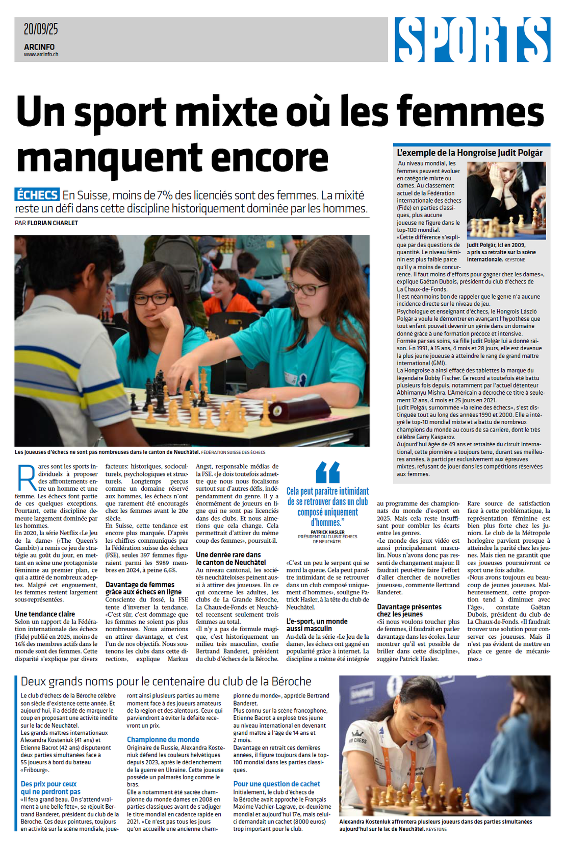 Un grand merci pour tout le travail incroyable que vous avez accompli pour organiser ce jubilé du 100ème anniversaire du club d'échecs de la Béroche.